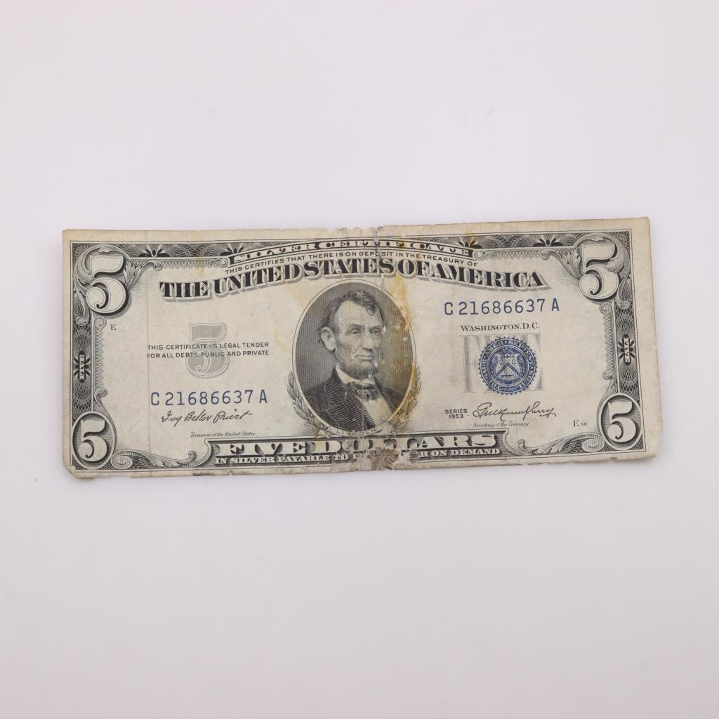 Blazing Auctions 1953 Silver Certificate $5 Dollar Bill