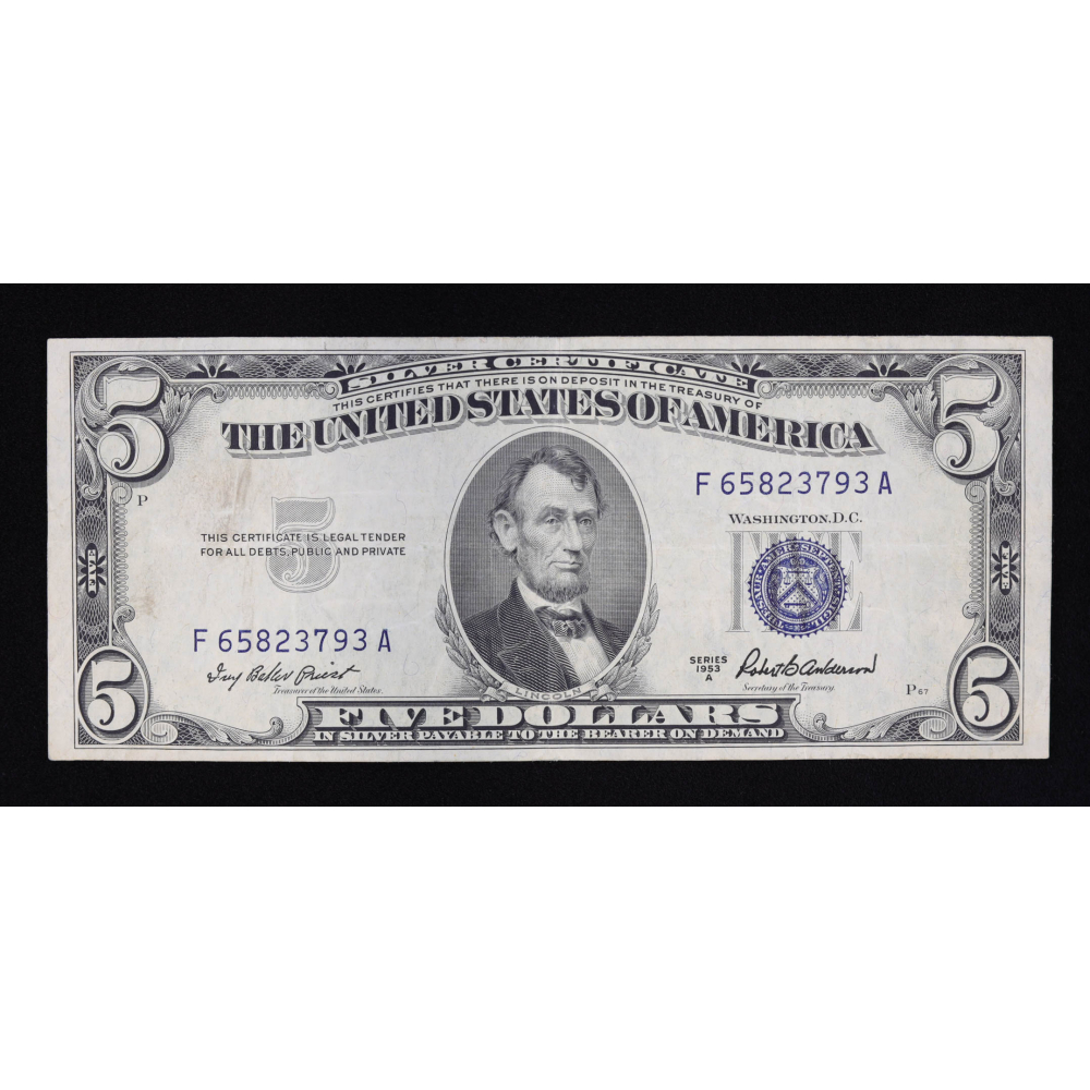 1953 A United States Silver Certificate $5 Five Dollar Bank Note