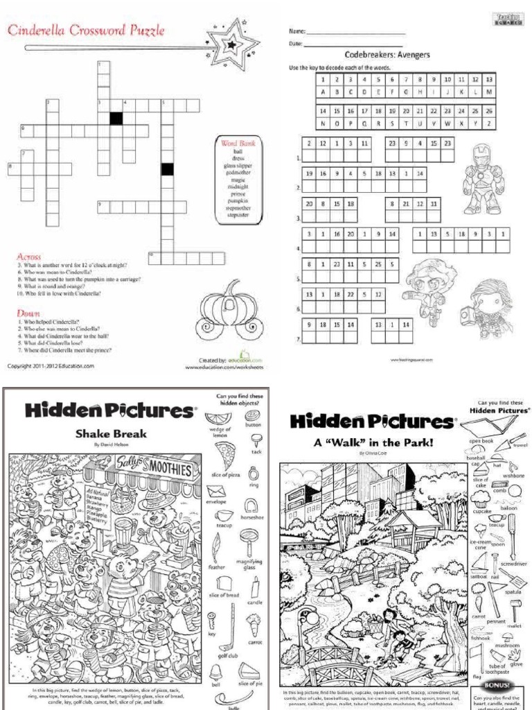Cinderella Crossword PDF