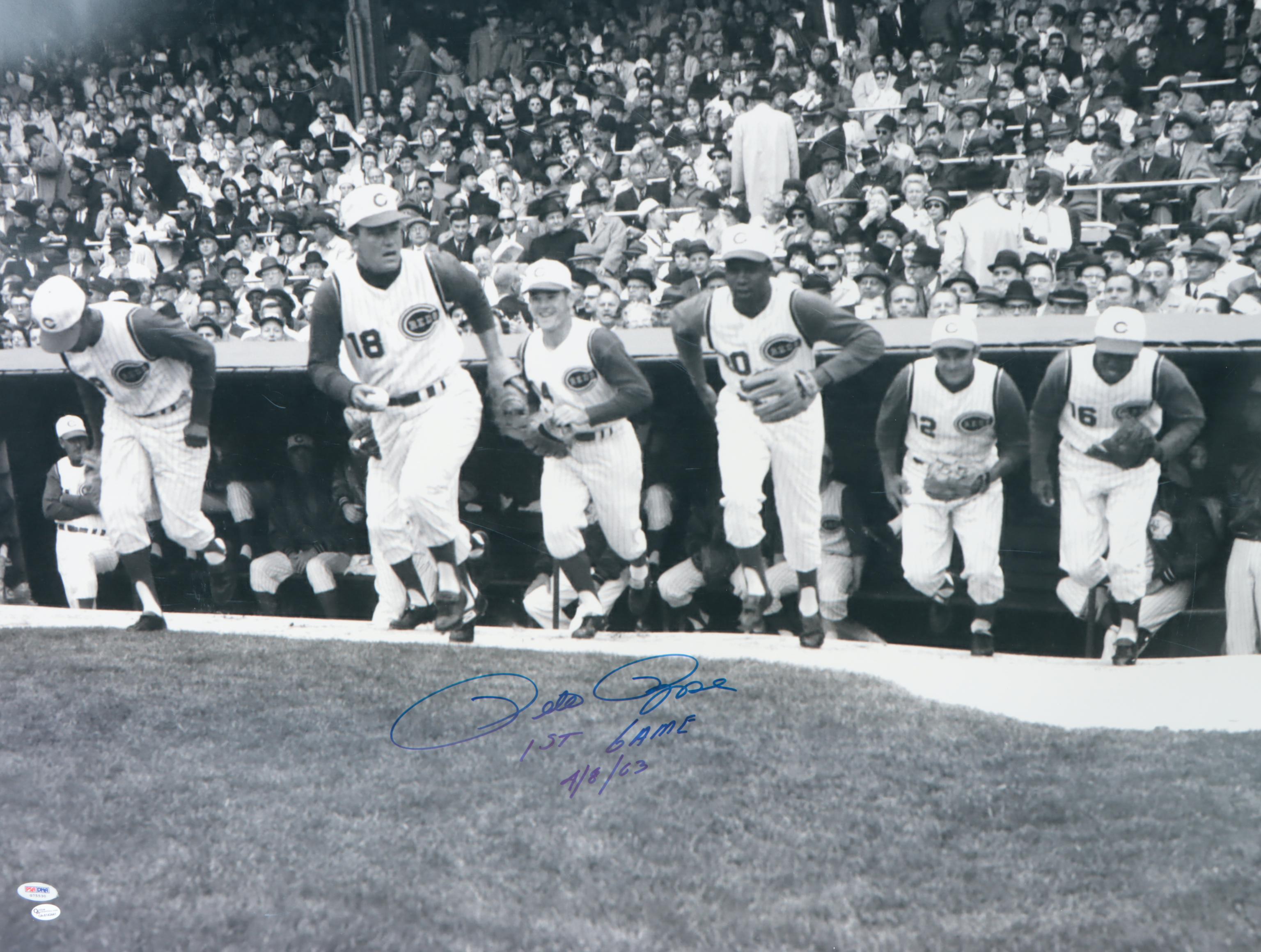 Pete Rose Signed Cincinnati Reds First Game Baseball Print EBTH