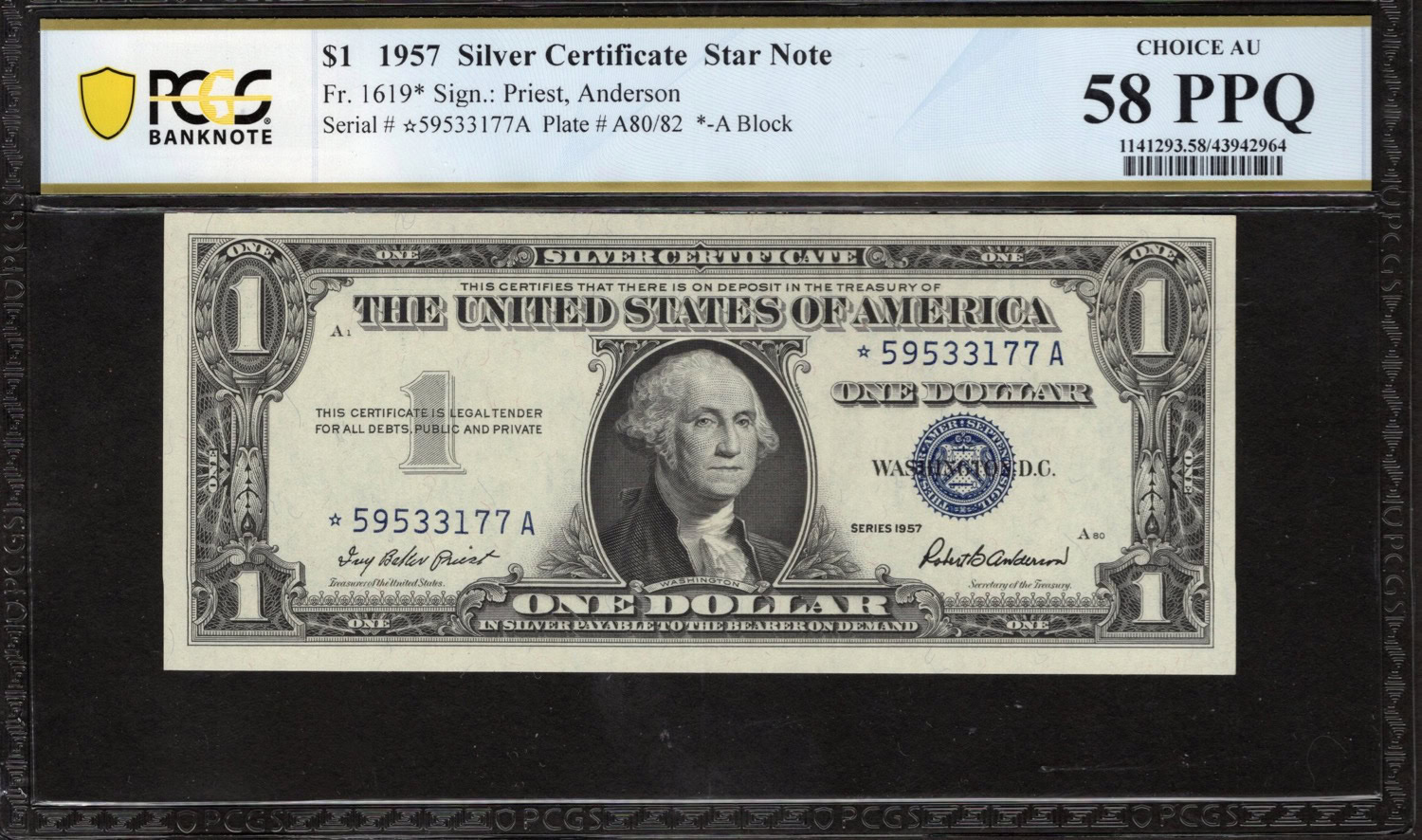 Fr 1619★ (★A Block) 1957 $1 Silver Certificate Star Note Priest