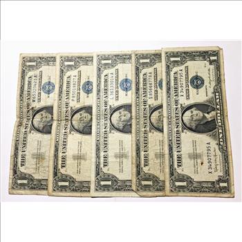 Lot of Five (5) Series 1957 $1 Silver Certificates*Circulated