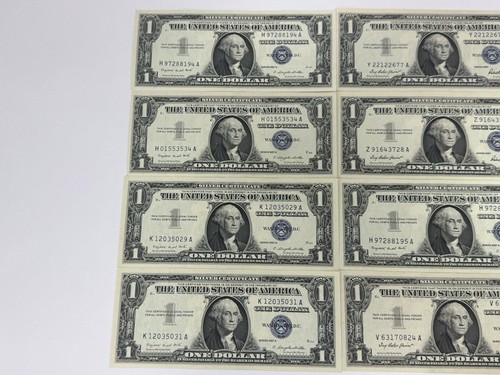 Lot of twelve (12) Series 1957 uncirculated $1 US dollar bill silver