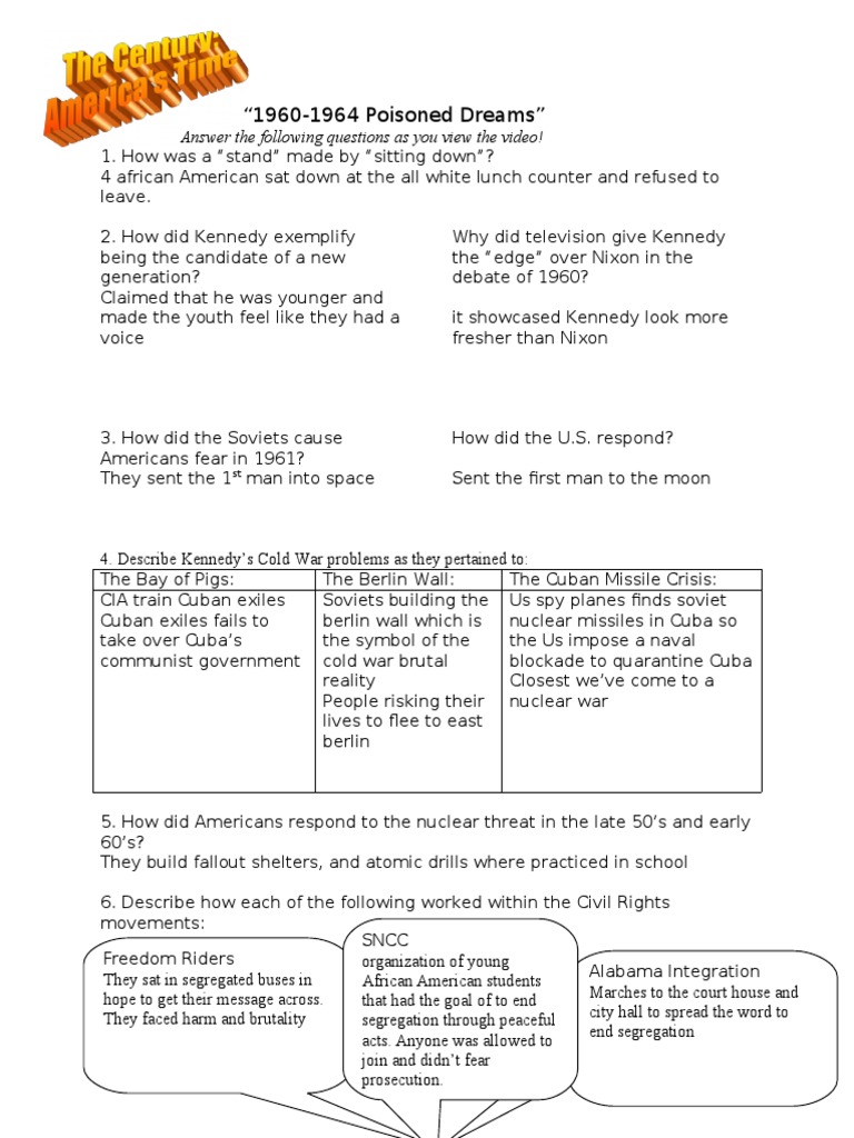 1960 1964 Poisoned Dreams Worksheet Answers