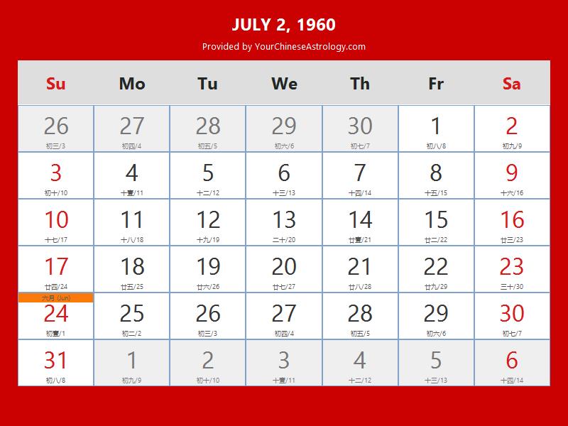 Chinese Calendar Jul 02 1960: Auspicious Things to Do and Hours Bazi
