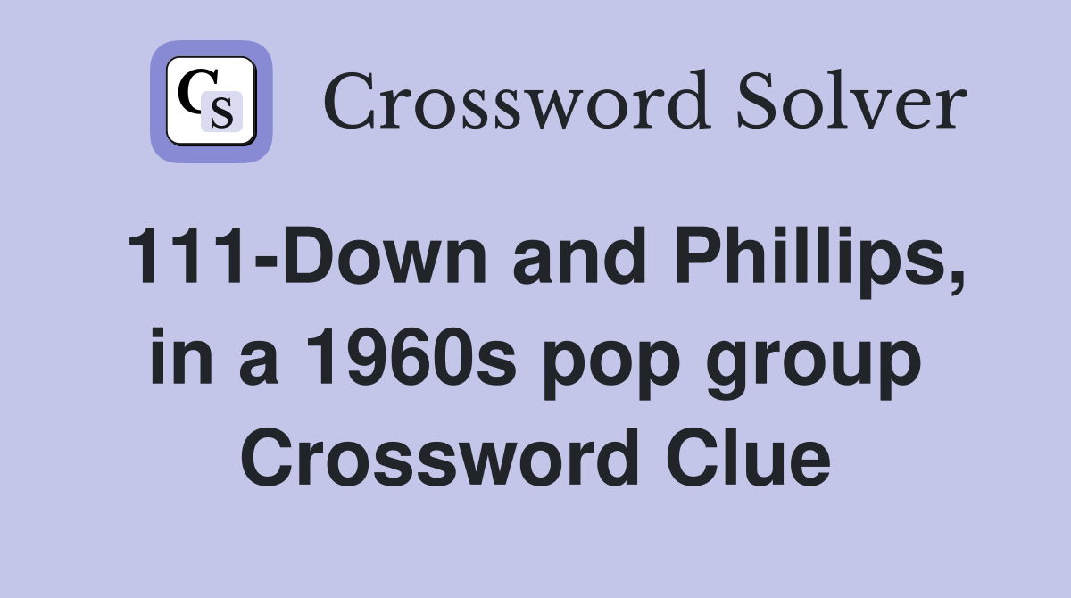 111 Down and Phillips in a 1960s pop group Crossword Clue Answers