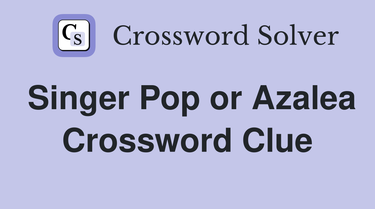 Singer Pop or Azalea Crossword Clue Answers Crossword Solver