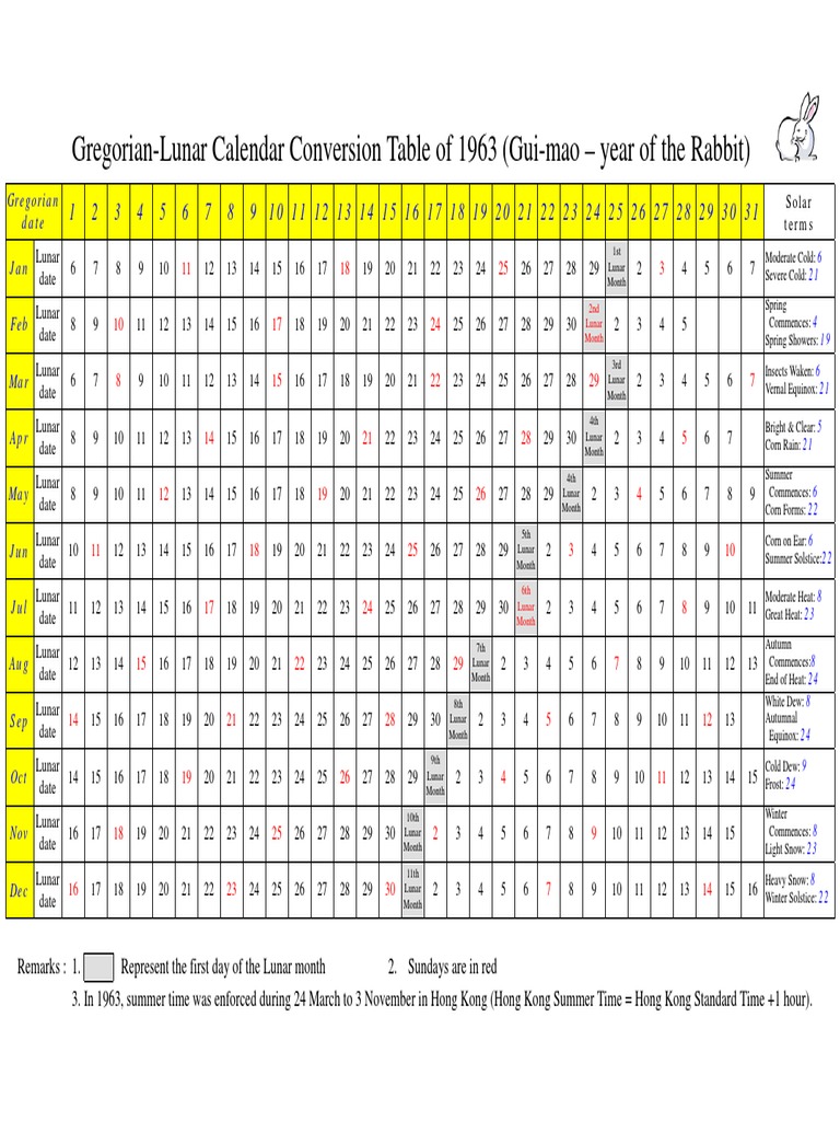 Gregorian Lunar Calendar Conversion Table of 1963 (Gui Mao Year of