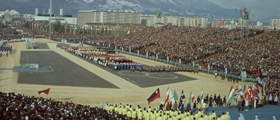 View of the Olympic stadium in Grenoble during the opening ceremony for
