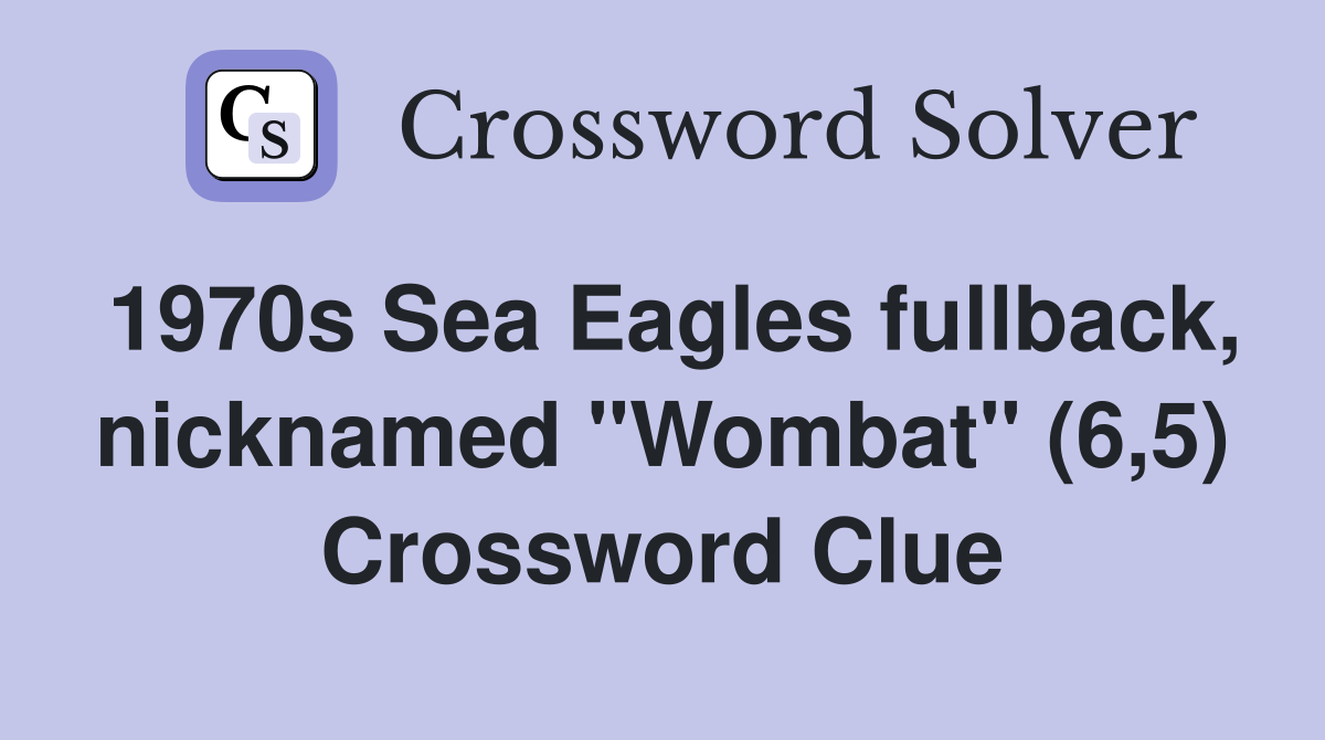 1970s Sea Eagles fullback nicknamed quot Wombat quot (6 5) Crossword Clue