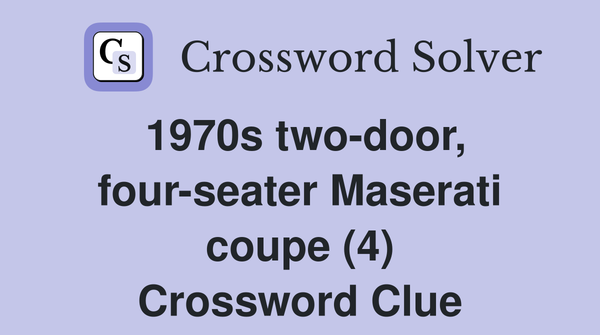 1970s two door four seater Maserati coupe (4) Crossword Clue Answers