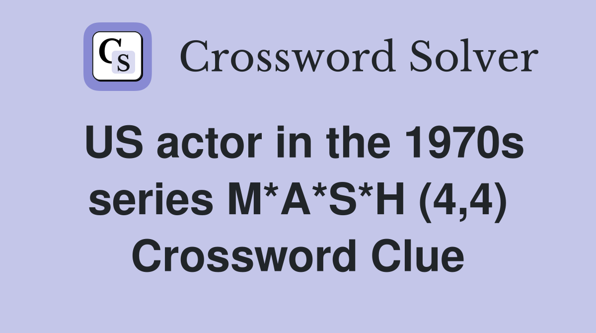 US actor in the 1970s series M*A*S*H (4 4) Crossword Clue Answers