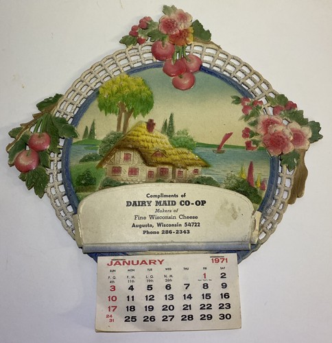 VTG Die Cut Embossed 1971 Calendar Lake House Summer Germany Wisconsin