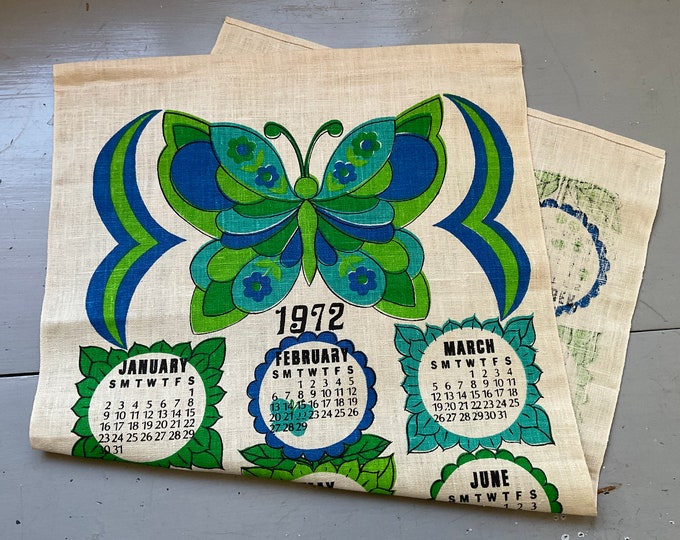 Vintage 1972 Calendar Towel Mod Butterflies Greet a New Year Barth