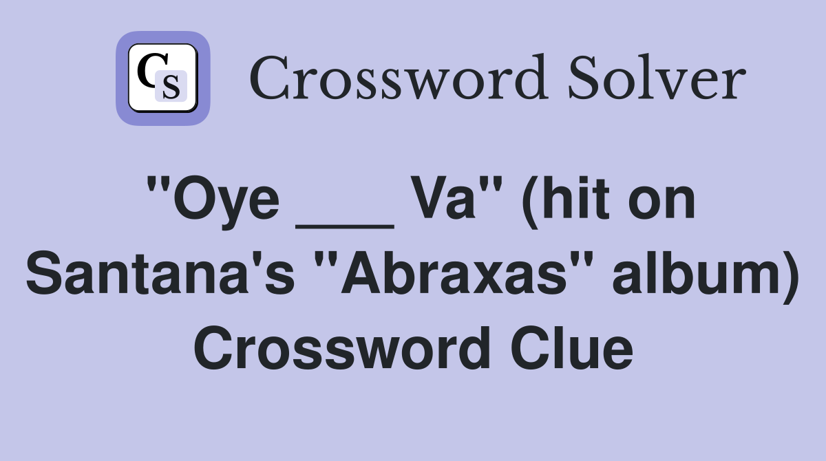 quot Oye Va quot (hit on Santana #39 s quot Abraxas quot album) Crossword Clue