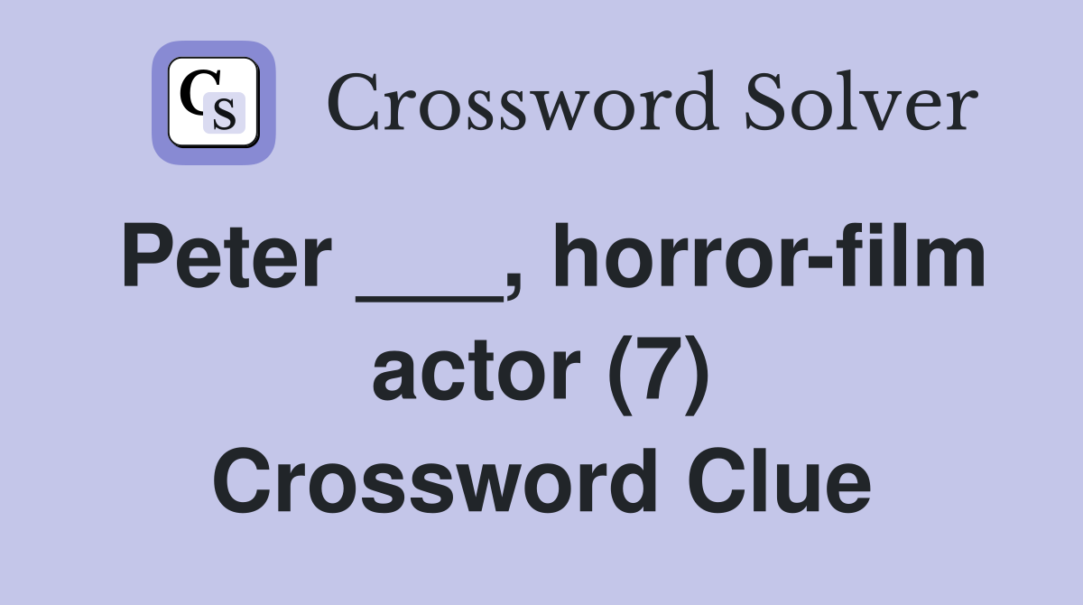 Peter horror film actor (7) Crossword Clue Answers Crossword