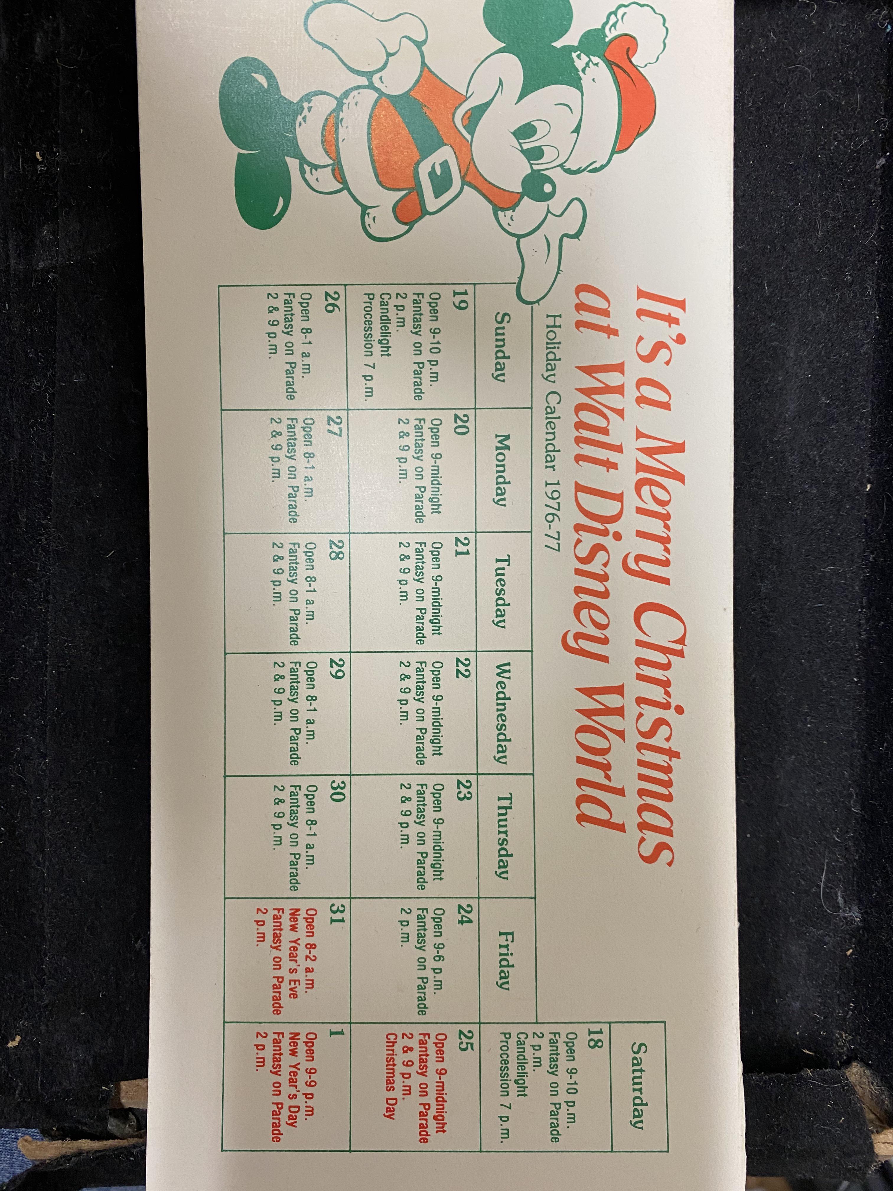 1976 1977 Walt Disney World Holiday Calendar Scrolller
