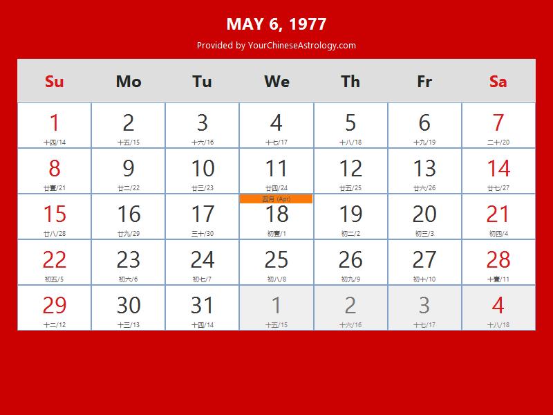Chinese Calendar May 06 1977: Auspicious Things to Do and Hours Bazi