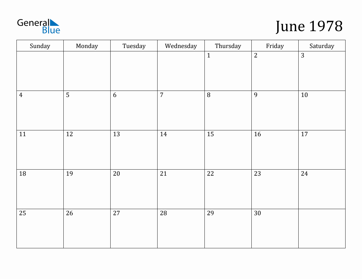 JUNE 1978 CALENDAR OF THE MONTH: FREE PRINTABLE JUNE CALENDAR OF THE