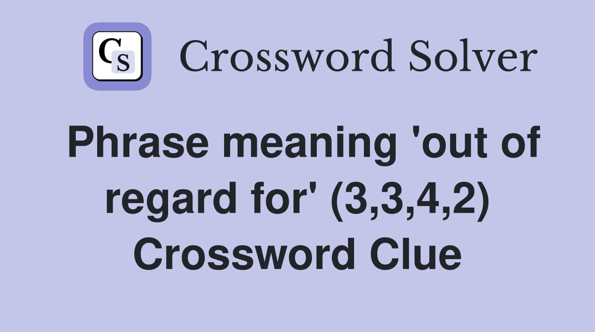 Phrase meaning #39 out of regard for #39 (3 3 4 2) Crossword Clue Answers