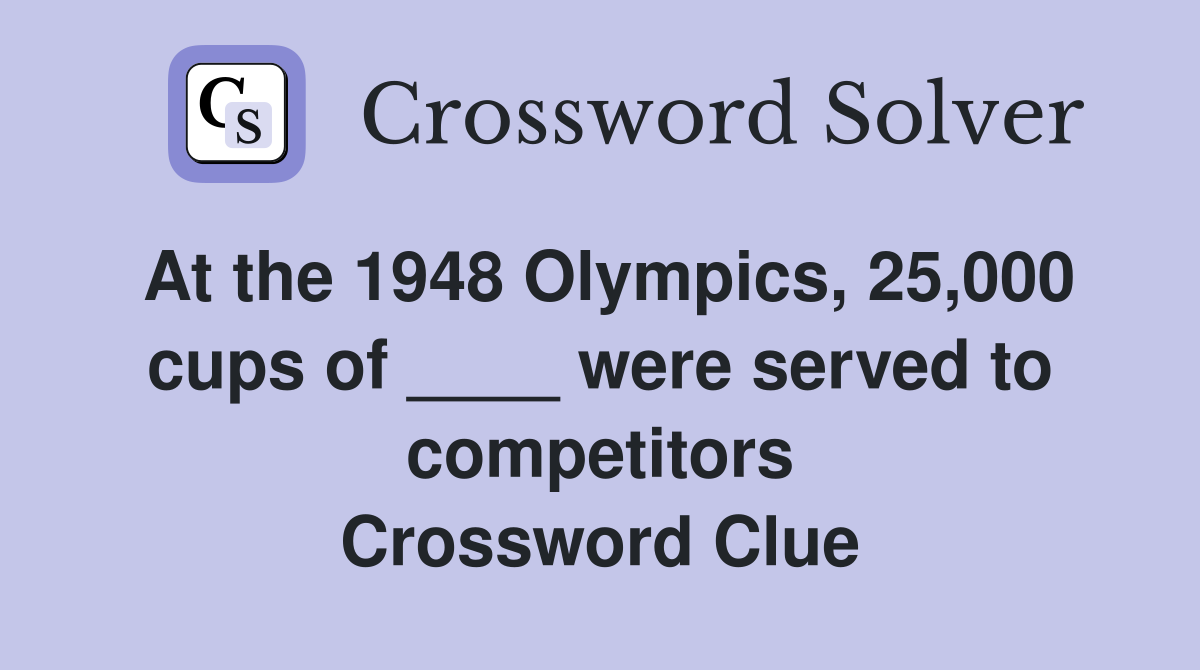 At the 1948 Olympics 25 000 cups of were served to competitors