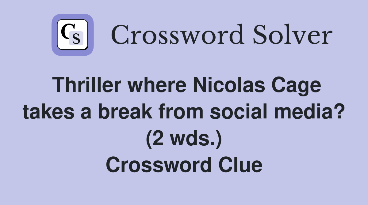 Thriller where Nicolas Cage takes a break from social media? (2 wds