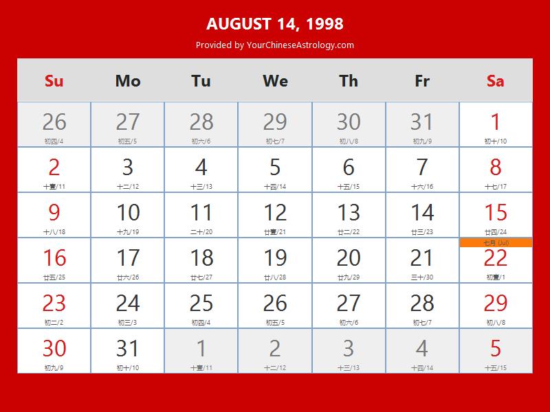 Chinese Calendar 1998 Plan Your Year Easily