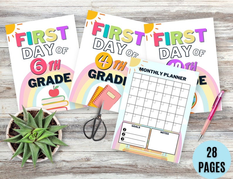 First Day School Sign Printable Bundle Academic Goal Planner Assignment