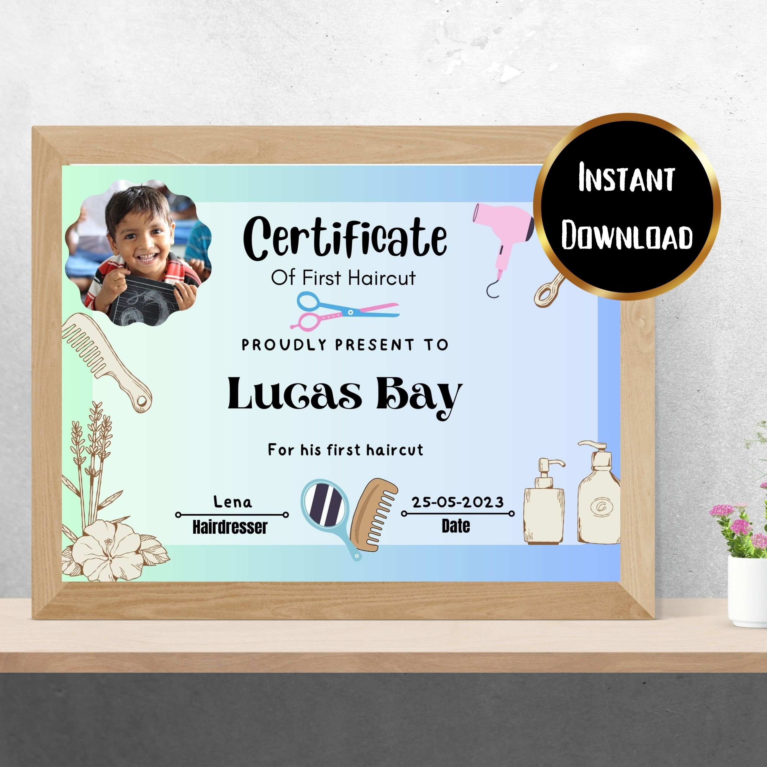 First Haircut Certificate INSTANT DOWNLOAD Personalized Baby #39 s First