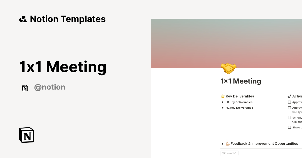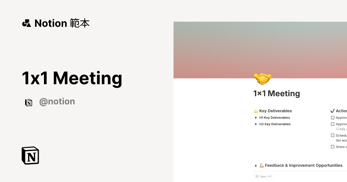 由 Notion 建立的 1x1 Meeting 範本 Notion Marketplace