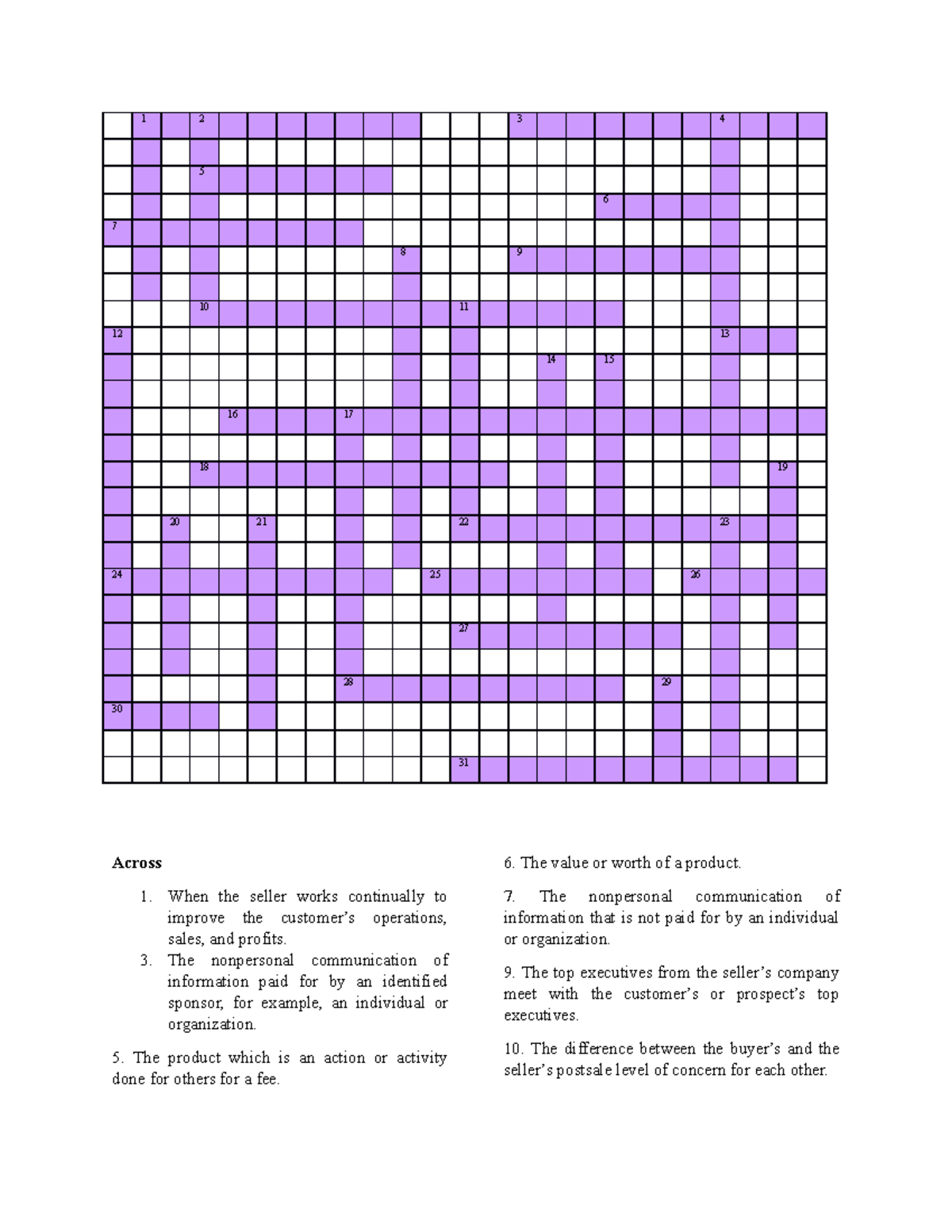 Puzzle #23 Puzzle Crossword puzzle Crossword