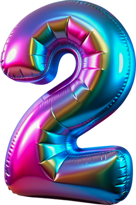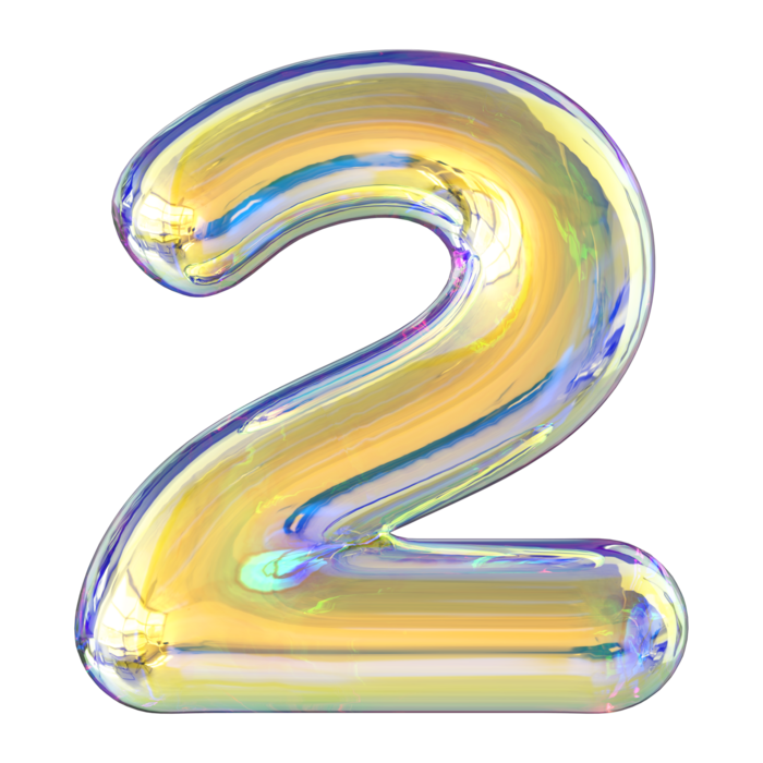 Holographic Number 2 with Reflective Surface Metallic Bubble Form with