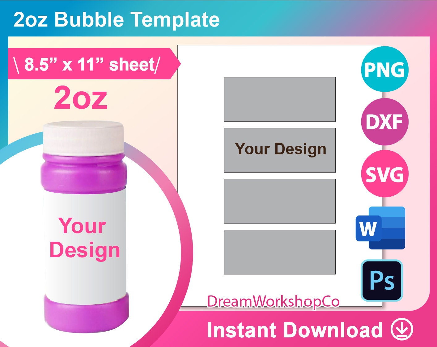 2oz Bubble Bottle Label Template SVG DXF Ms Word Docx Png Etsy