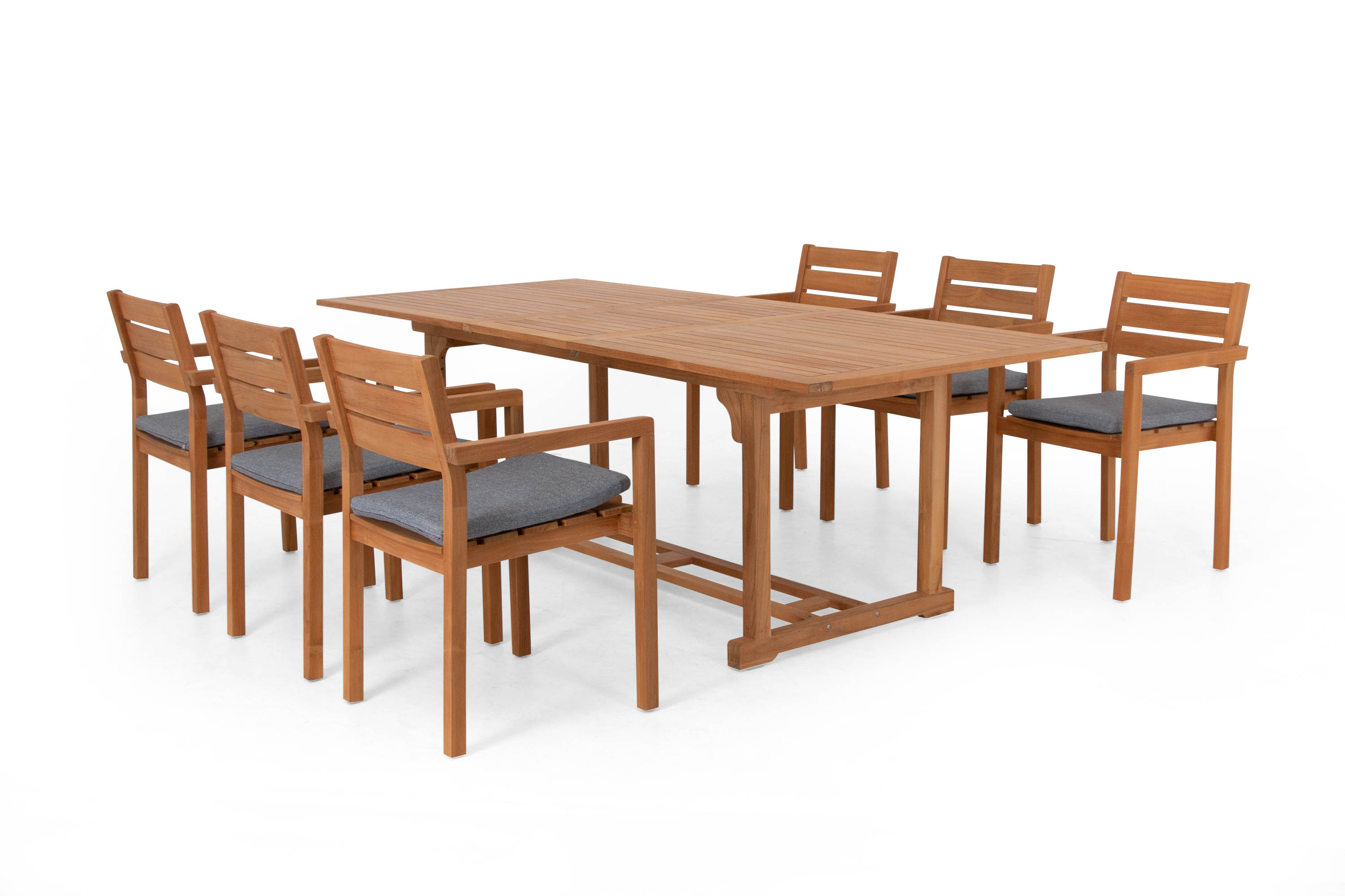Köp Medford matgrupp Teak med grå dyna 6 stolar bord 180 230 x