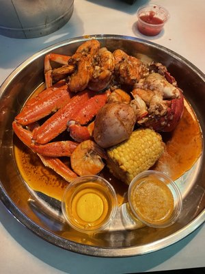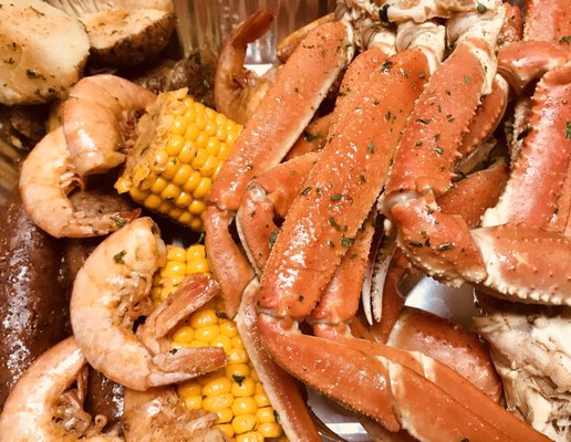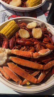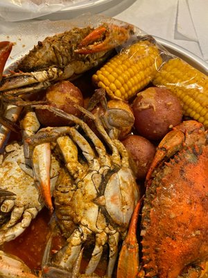 Juicy crab Calories? 2 small potatoes half lb snow crab half lb blue
