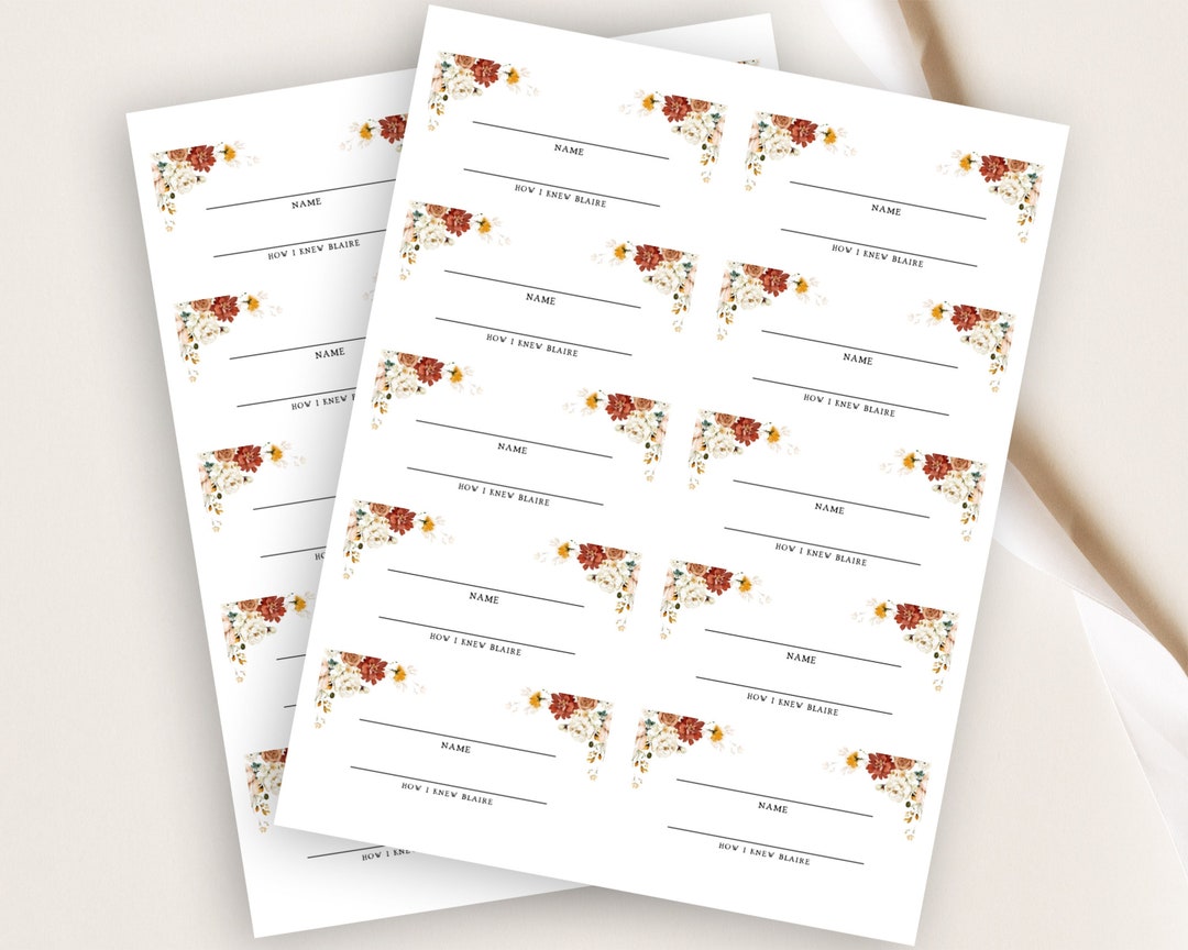 Name Tag Labels Cottage Floral Wildflowers Celebration of Life Decor