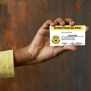 Editable School Bus Driver Certification Card Costume Template Pocket