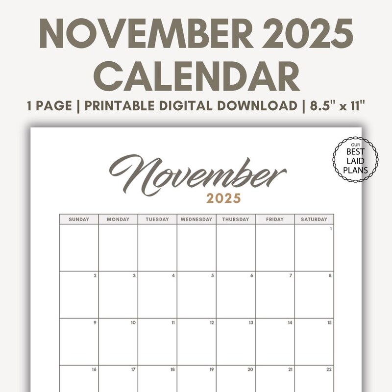 2025 Nov Calendar Etsy