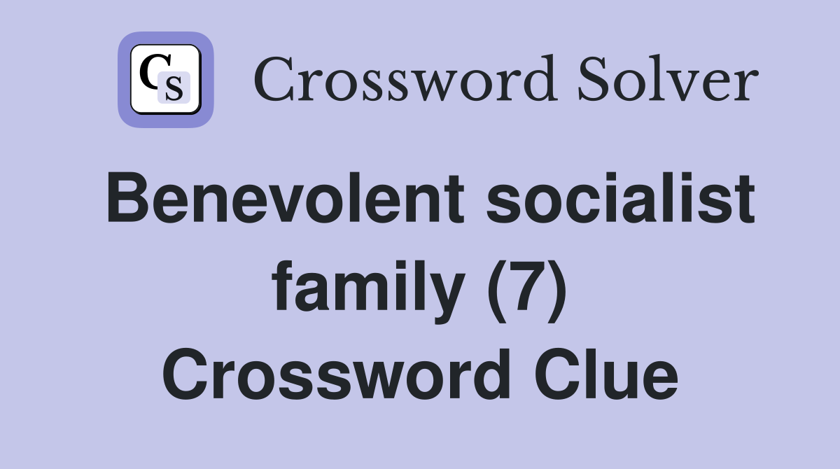 Benevolent socialist family (7) Crossword Clue Answers Crossword Solver