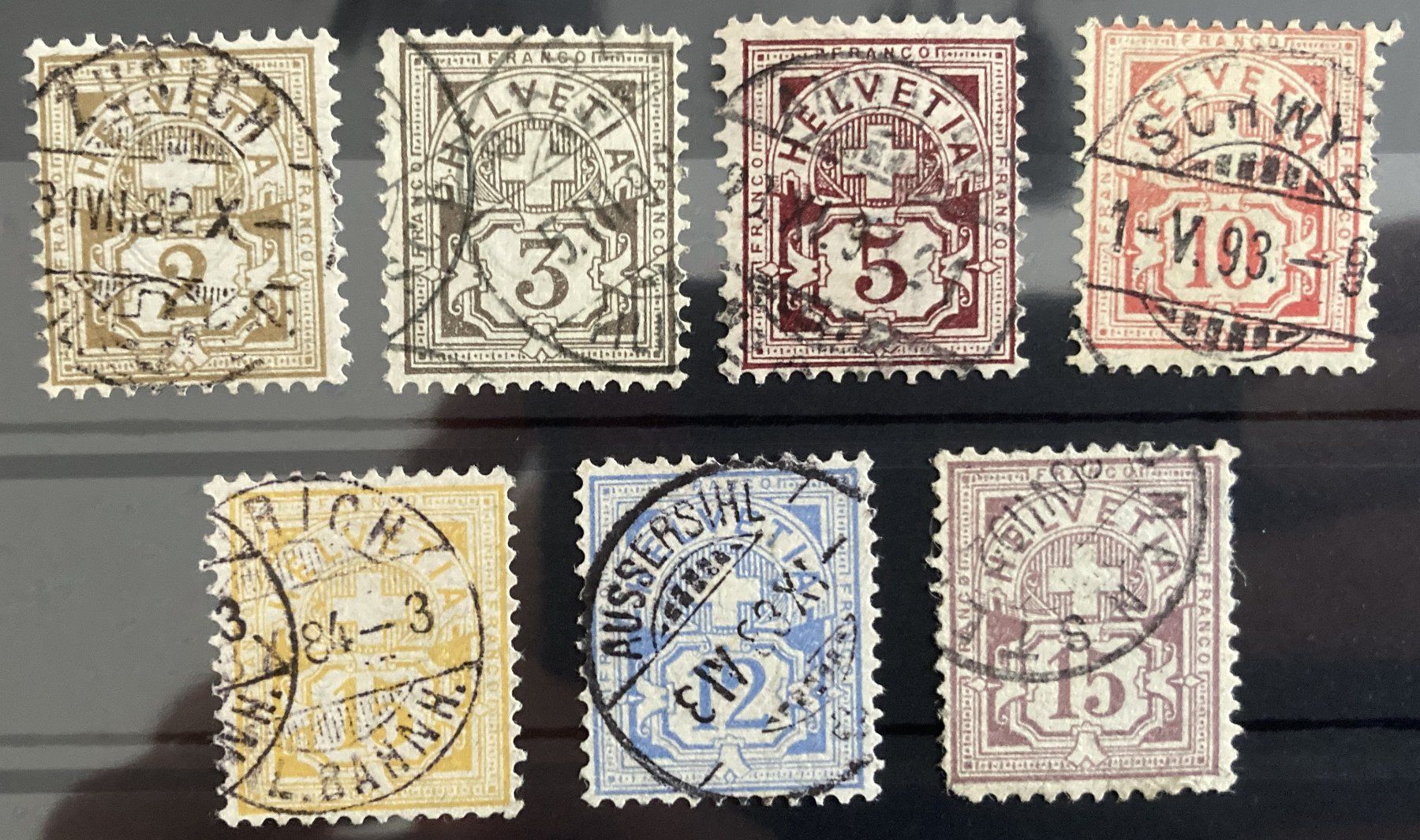 1882 Ziffern A Serie auf Faserpapier 58A 64A SBK 201 Fr (Gebraucht