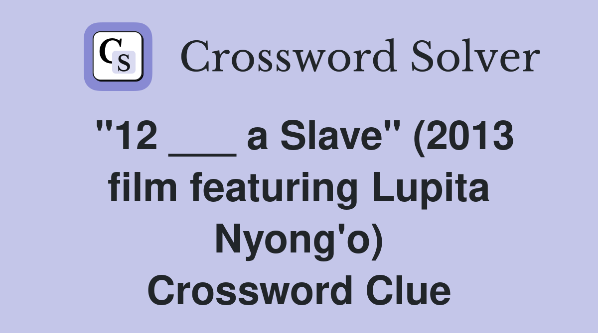 quot 12 a Slave quot (2013 film featuring Lupita Nyong #39 o) Crossword Clue