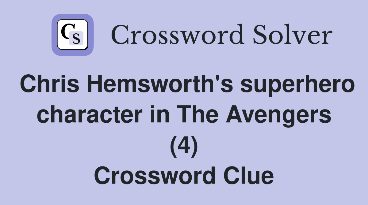 Chris Hemsworth #39 s superhero character in The Avengers (4) Crossword