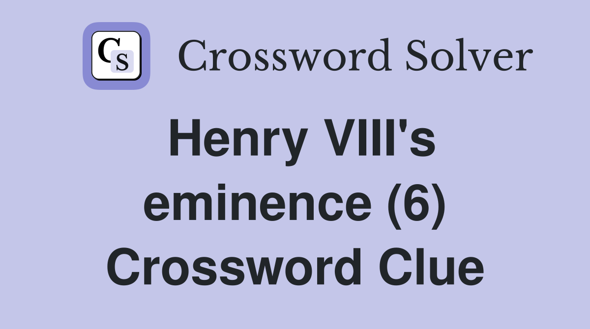 Henry VIII #39 s eminence (6) Crossword Clue Answers Crossword Solver