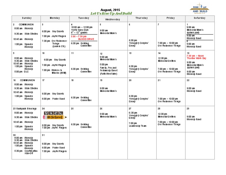 Calendar 2015 august free image download