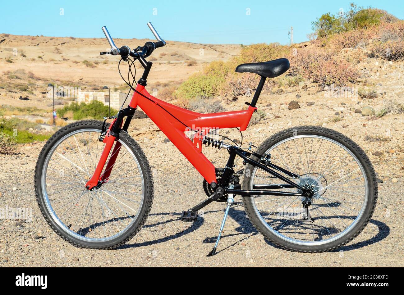 Modern Red Full Suspension Mountain Bike MTB Bicycle Stock Photo Alamy