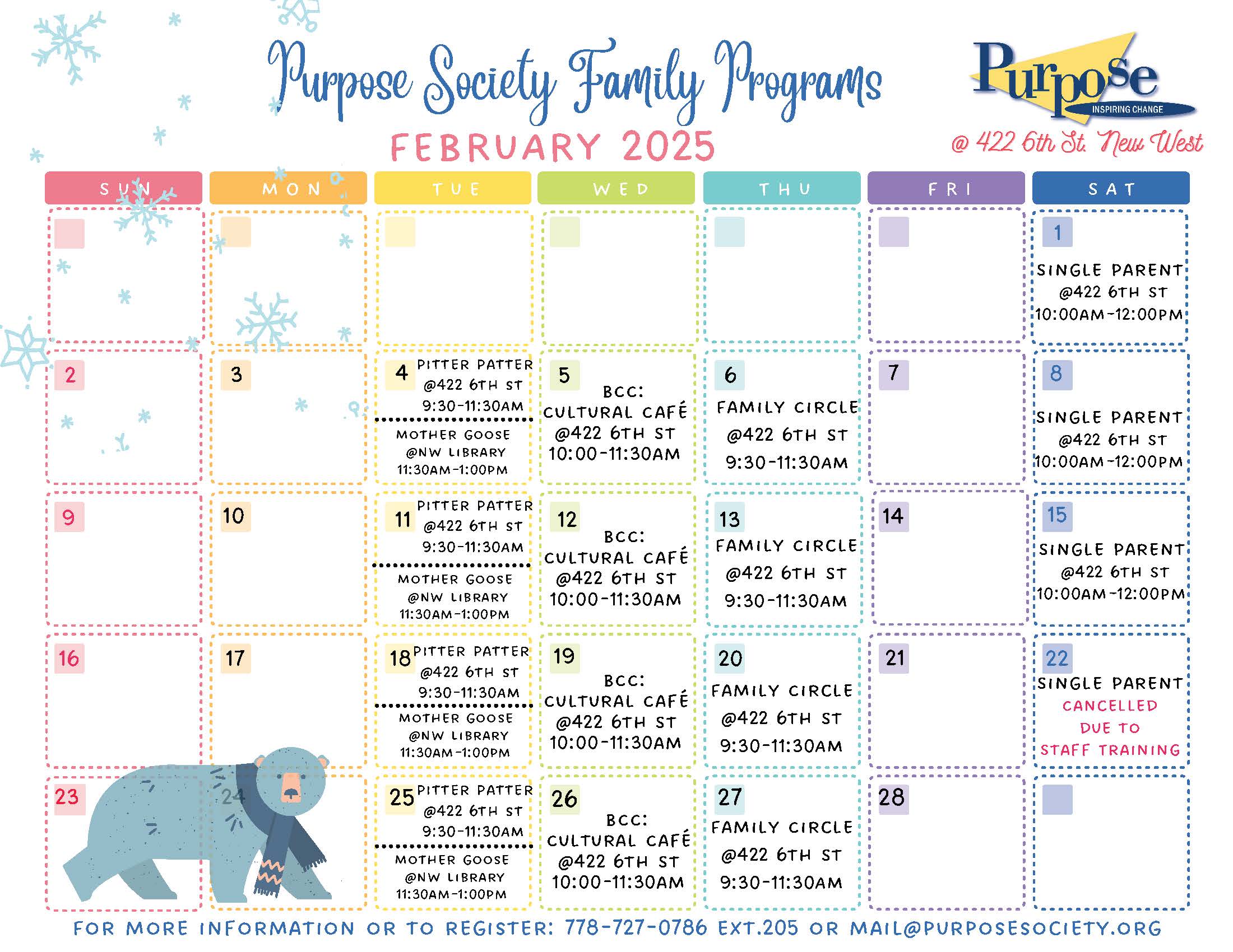 Feb Calendar Lower Mainland Purpose Society for Youth and Families