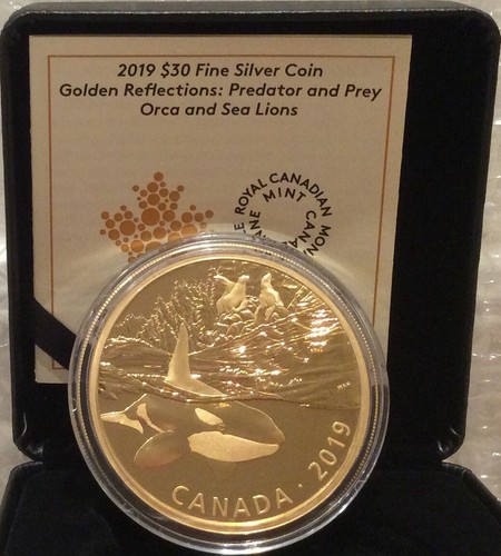 2019 Orca Sea Lions $30 2OZ Pure Silver Proof Coin Canada Predator