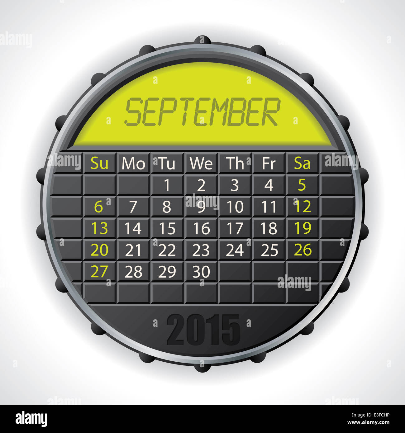 2015 september calendar design with color lcd display Stock Photo Alamy