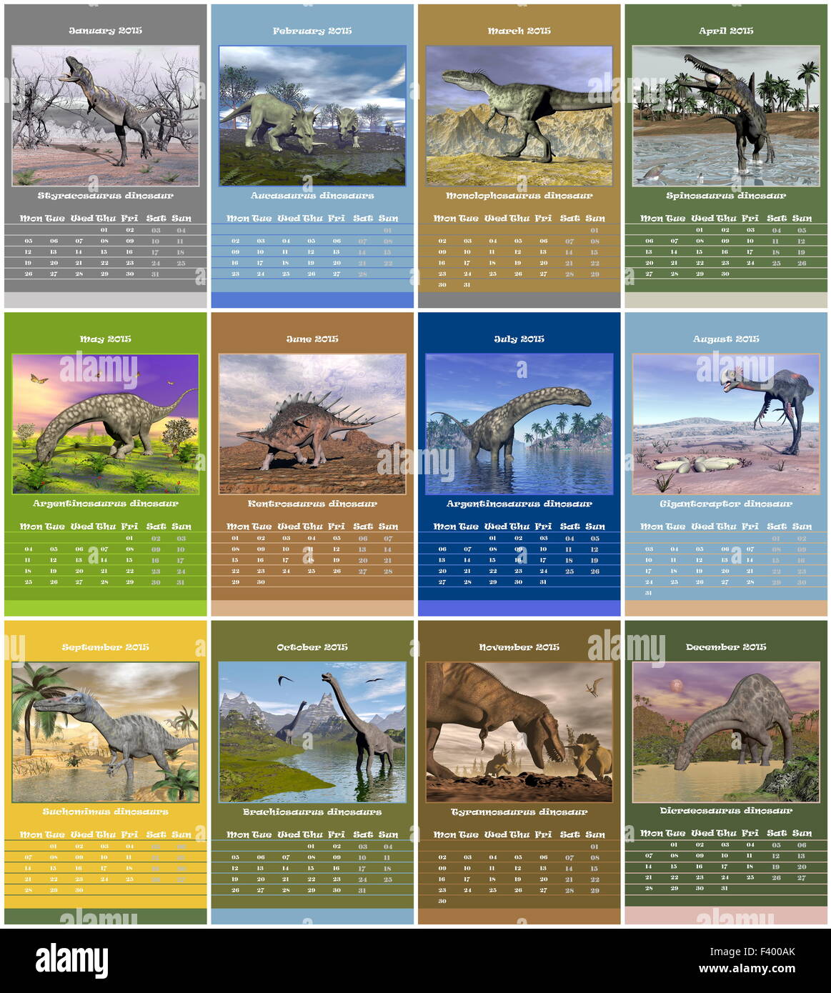 European 2015 year calendar with dinosaurs Stock Photo Alamy