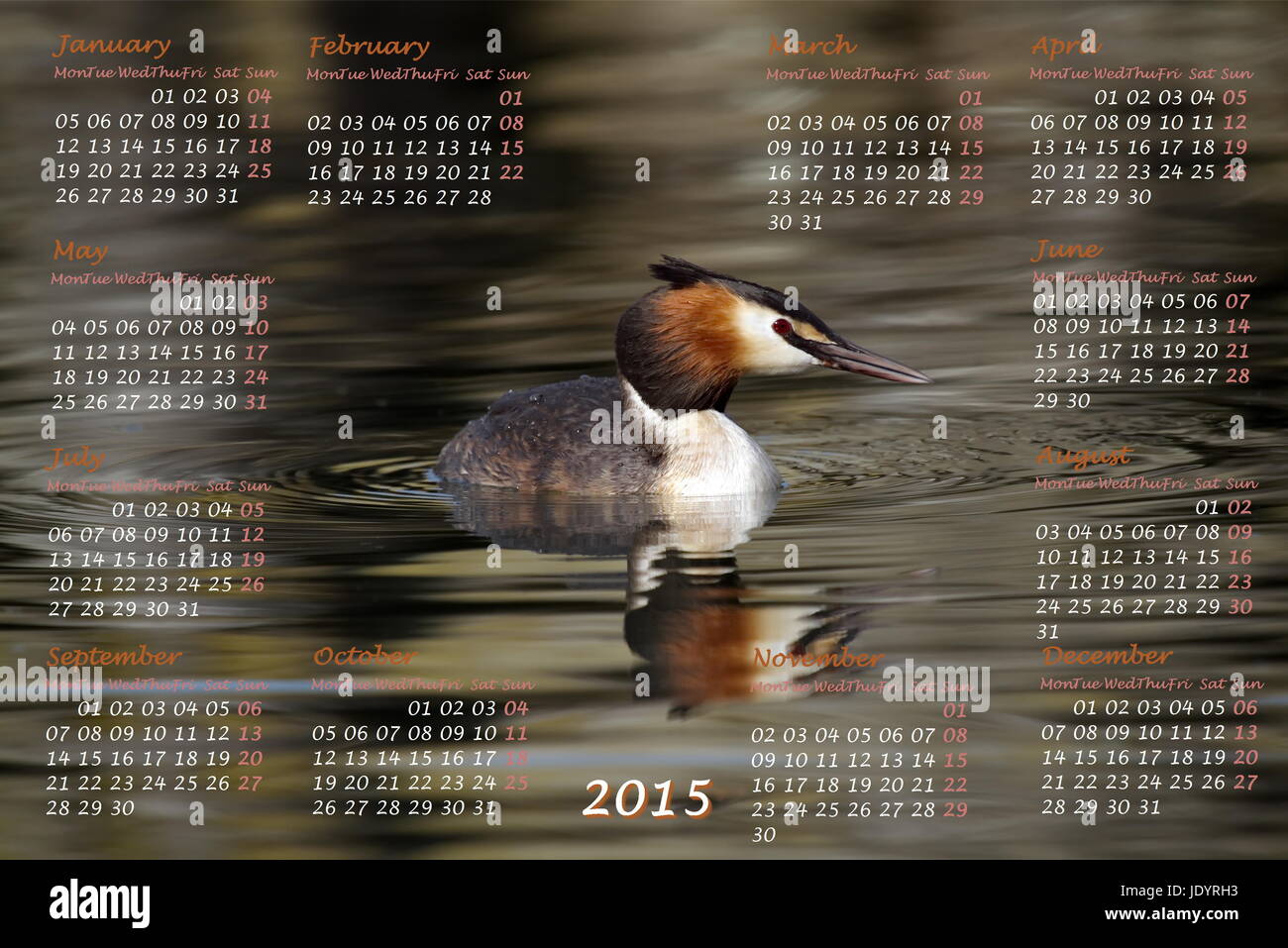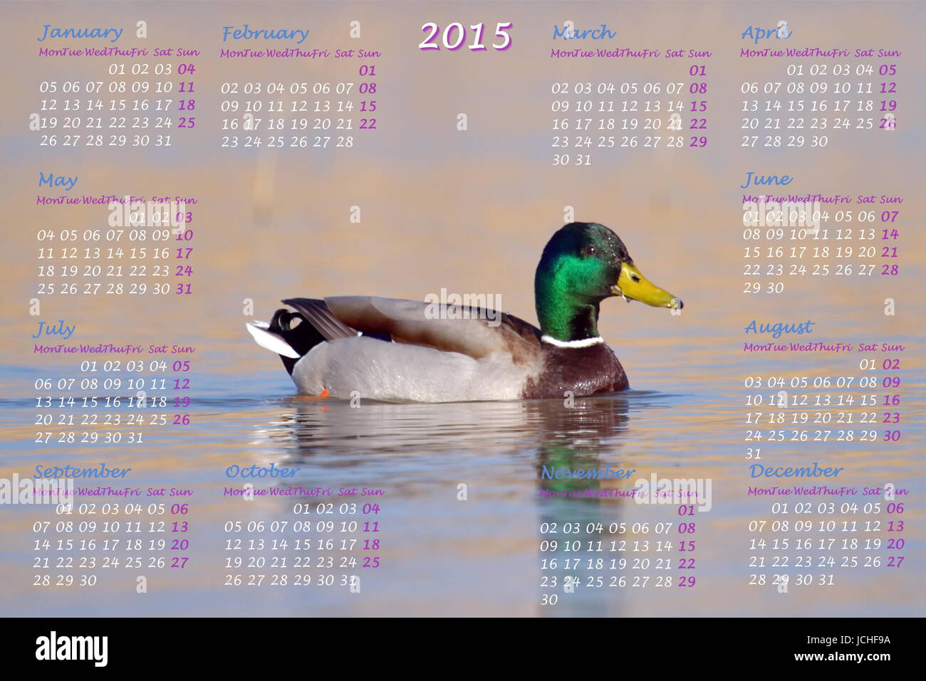 European 2015 year calendar with male mallard duck on water Stock Photo